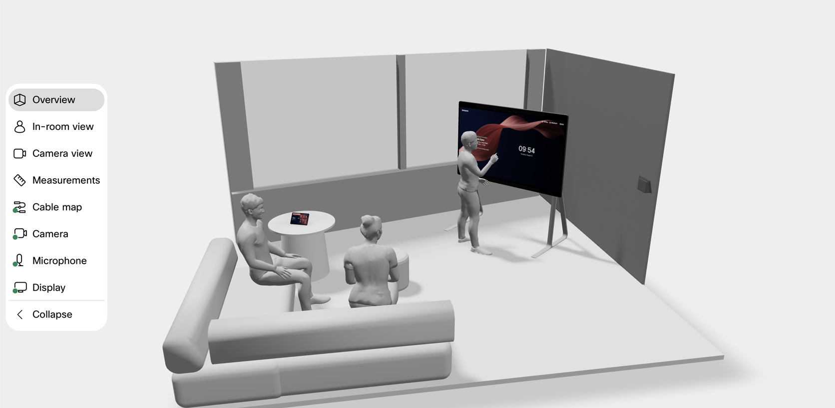 Meeting room design is about sweating the small details around camera and microphone placement, table shape, seating arrangement, space around the table, the size of your monitors, ergonomics, and other nuances that can make or break the experience. Details that often get lost in translation when aligning with other stakeholders outside of IT or external contractors. In addition, it’s not uncommon that the consequences of technology choices remain vague in the planning phase, leading to extended decision cycles and costly project delays.