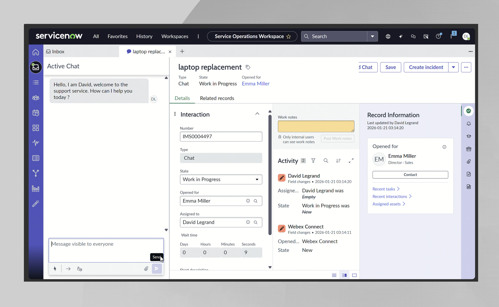 Webex Contact Center for ServiceNow embeds enterprise-grade contact center capabilities directly into ServiceNow, creating a unified experience where cases and interactions connect automatically. No context switching. No friction.