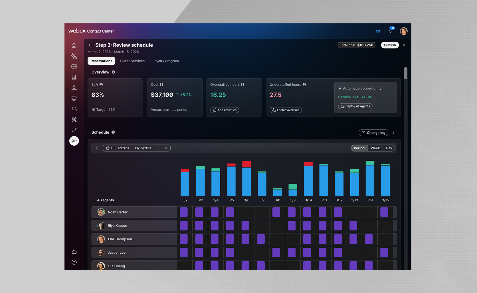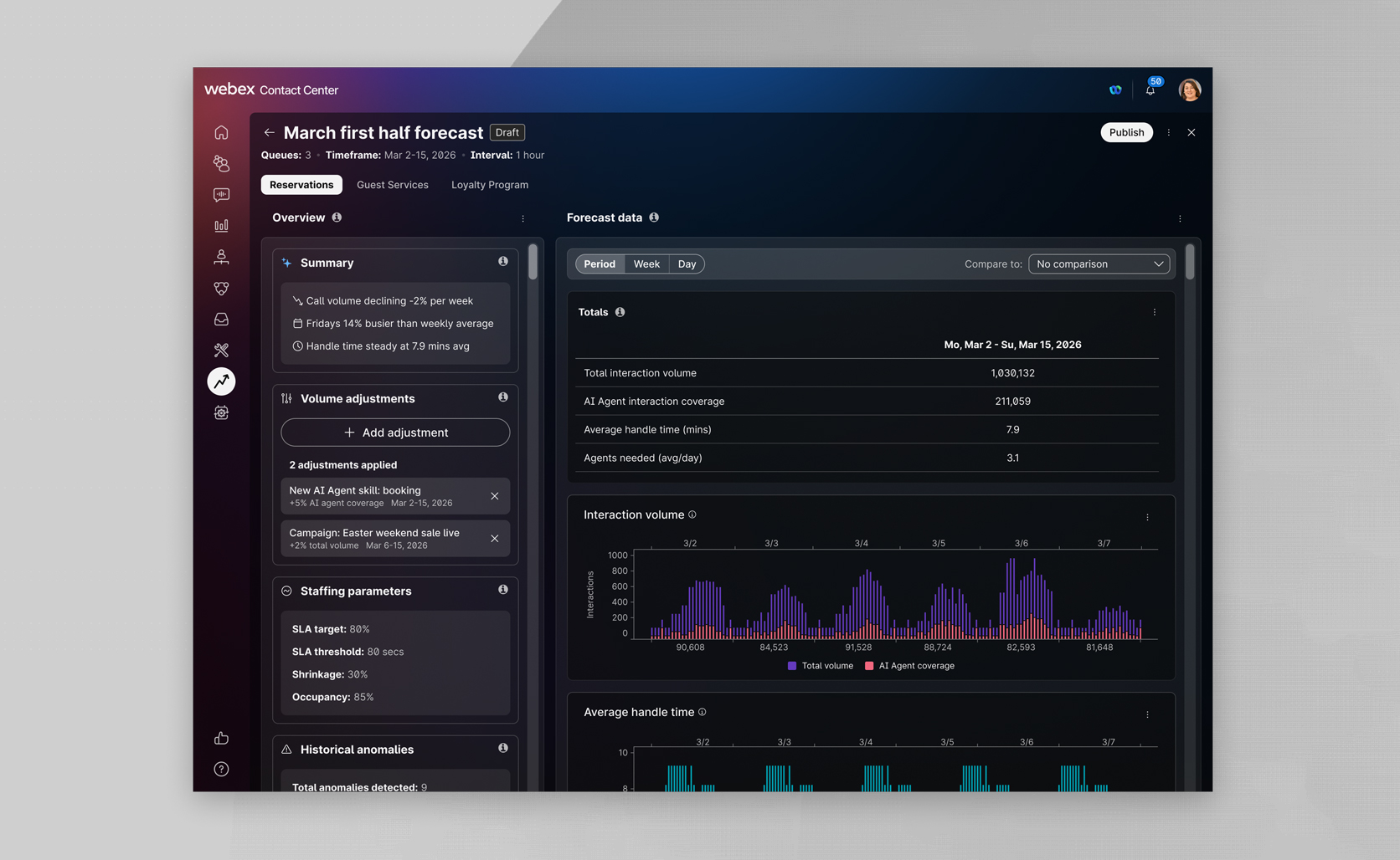 Building on the momentum of our recent Webex AI Quality Management announcement—which allows supervisors to evaluate every customer interaction, whether managed by AI or a human—we’re excited to introduce AI Intelligent Forecasting and Scheduling (Beta Q1 CY26). These new capabilities are designed to optimize workforce management planning and drive even greater results.