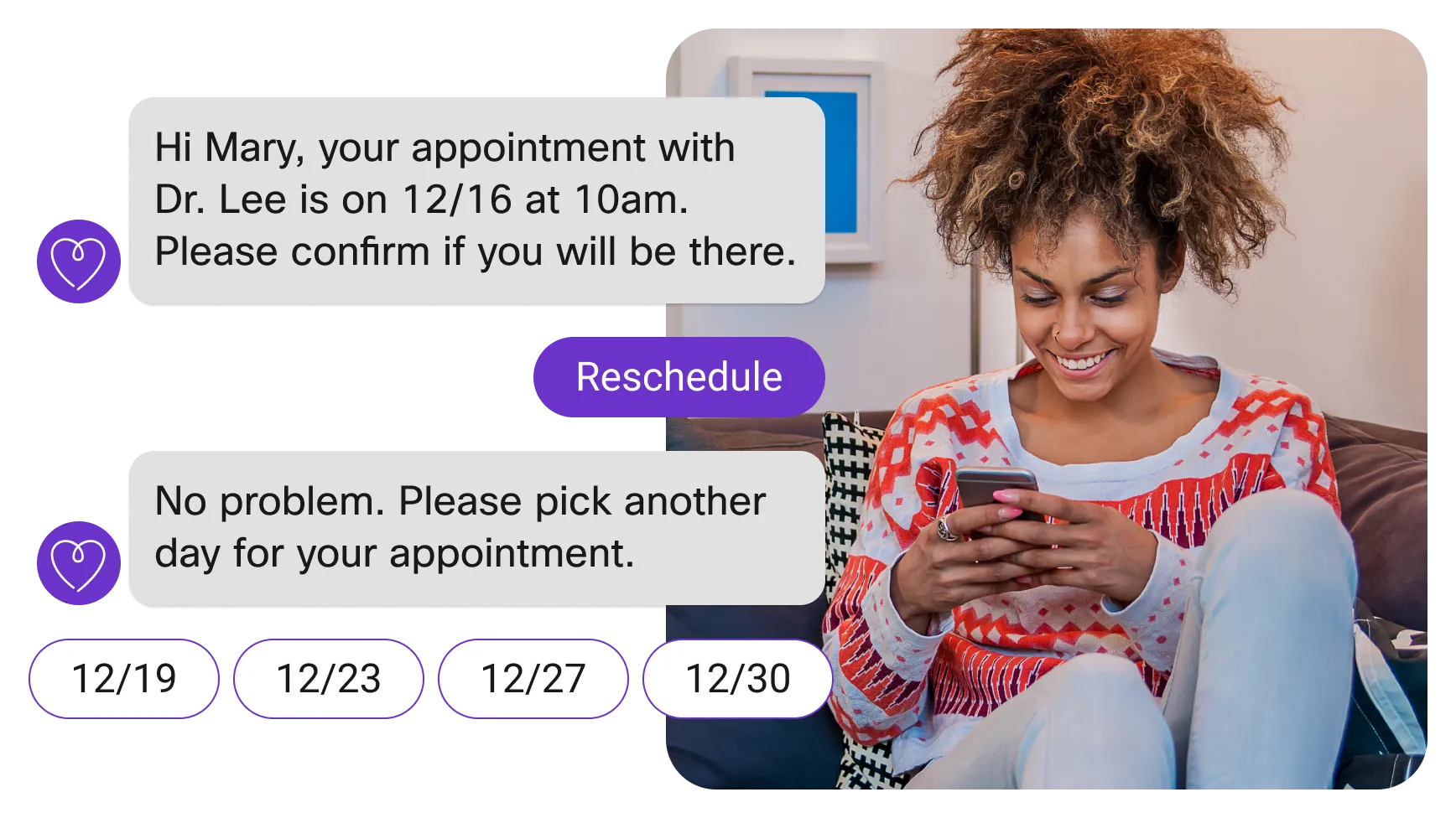 RBM is also an ideal channel for proactively sending interactive updates and reminders that let customers respond in-channel. For example, a hospital could send automated appointment reminders through RBM, with action buttons for patients to confirm, cancel, or rearrange their visit, helping minimize costly no-shows and optimize clinic schedules.