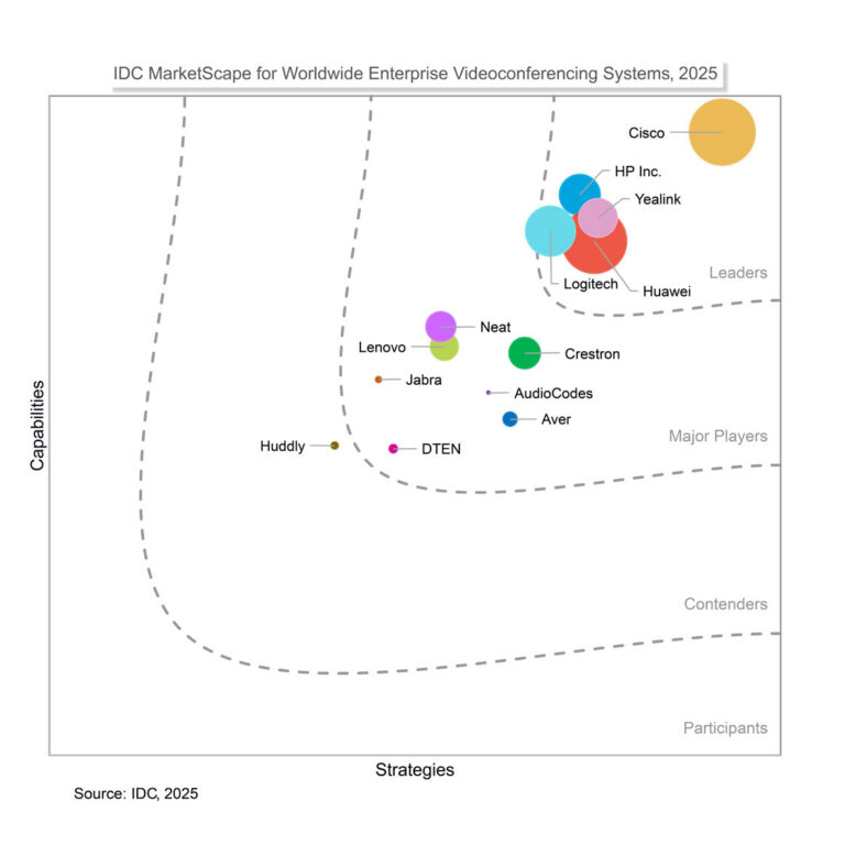 シスコが『IDC MarketScape:全世界の企業向けビデオ会議システムに関するベンダーアセスメント 2025 年(IDC MarketScape: Worldwide Enterprise Videoconferencing Systems 2025)』(doc # US52995625、2025 年 9 月)でリーダーに選出されました。